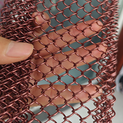 Red Decorative Aluminium Metal Mesh Chain Link coil Curtain Drapery Fabric exterior decorative screen for rood divider
